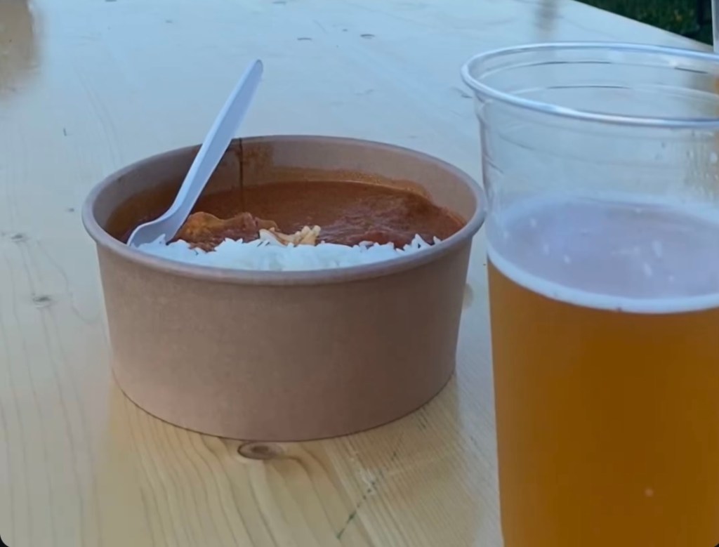 海外のお祭りで、カレーライスにビールを味わえるなんて贅沢・・・