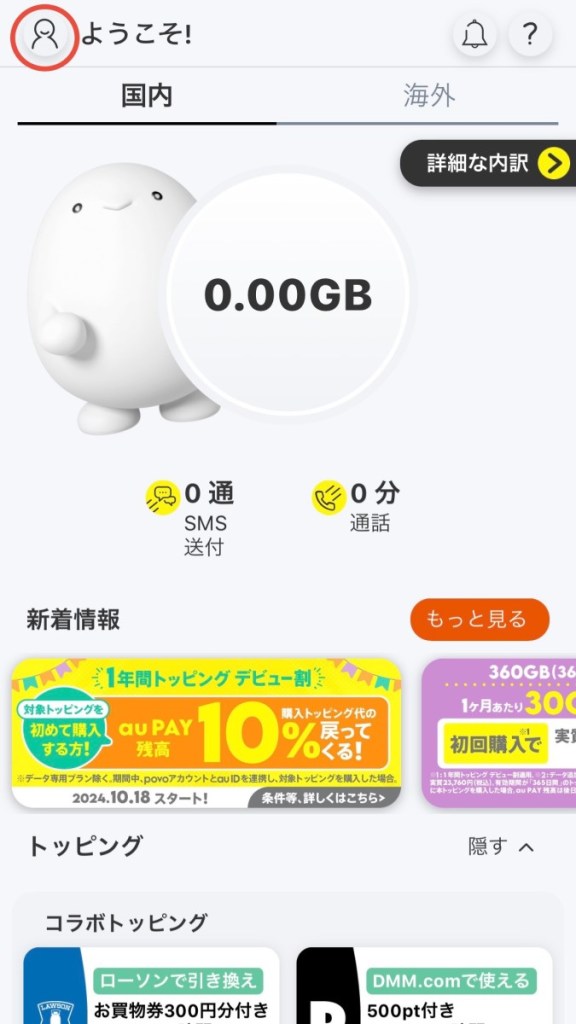 新しい方のiPhoneからpovo2.0のアプリを開いて試したけど、やっぱりできない!
